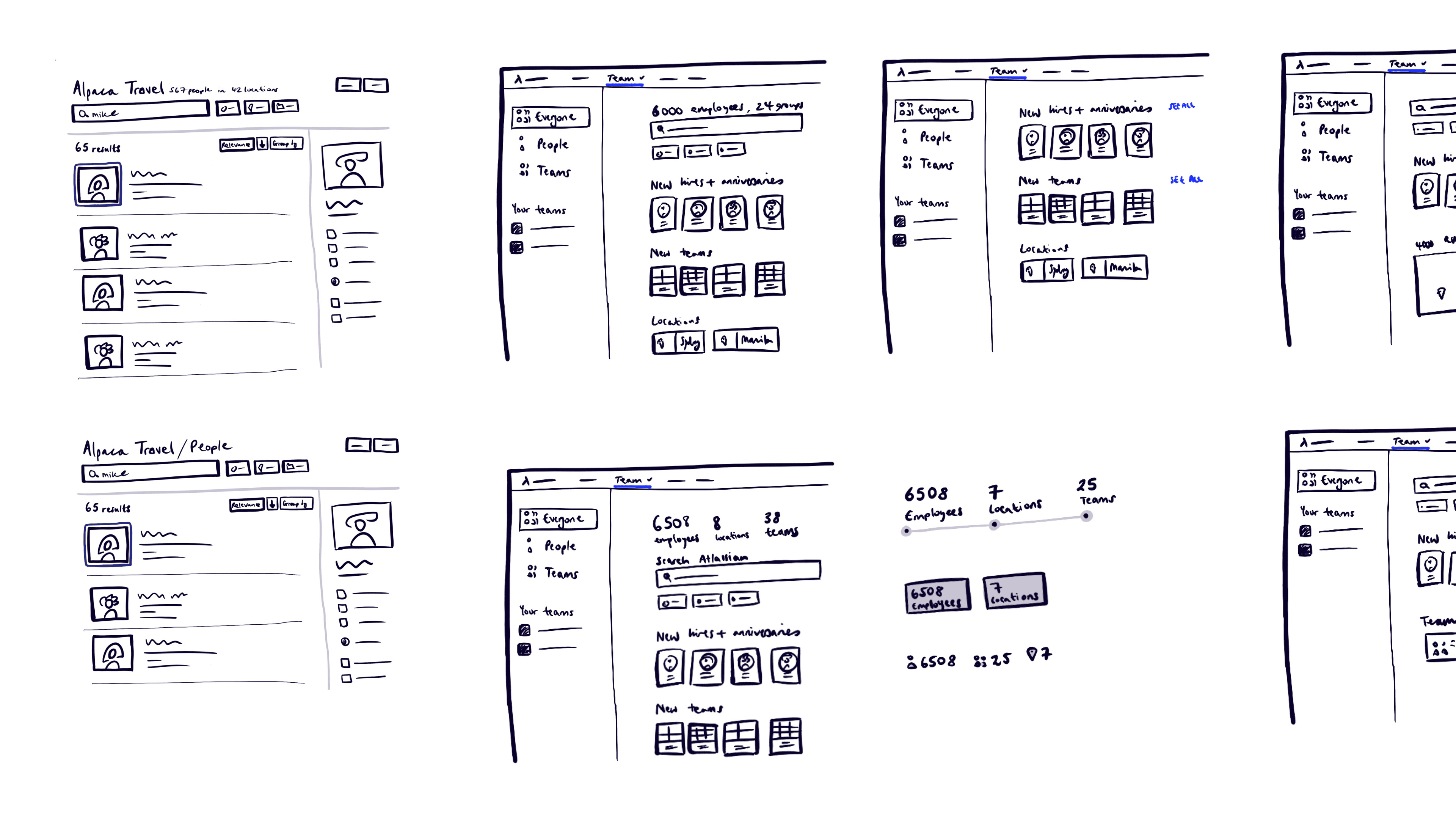 Once we had narrowed the staff directory initial scope to a browse and search experience, I explored different UI variations - playing with details such as the people and team cards.